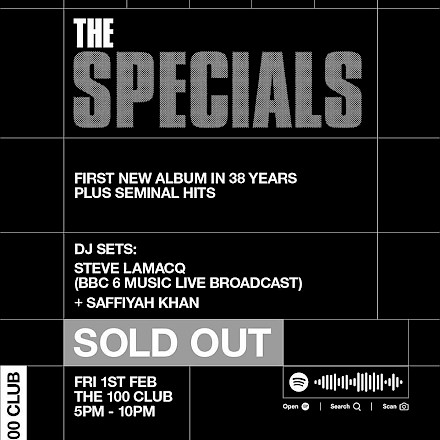 Promovido pela Fred Perry Subculture, o concerto, ao vivo, da mítica banda britânica de punk rock - The Specials - no 100 Club London, estará disponível (por áudio) no site da BBC.